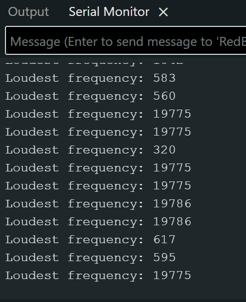 Finally, I ran the MicrophoneOutput example to demonstrate the PDM microphone functionality. This program outputs the loudest frequency detected.