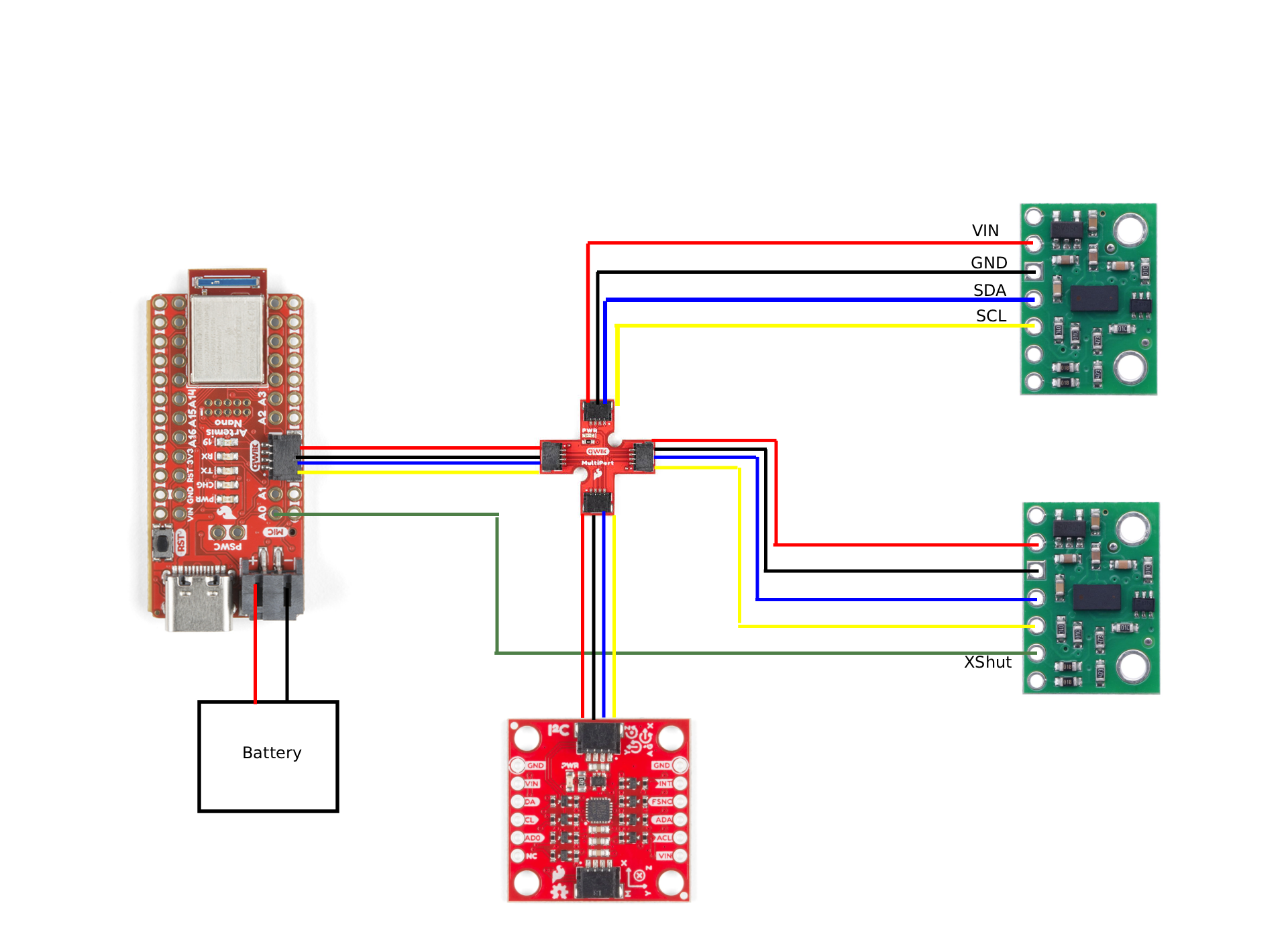 digitalWrite(A0, LOW); // Xshut low to set I2C address